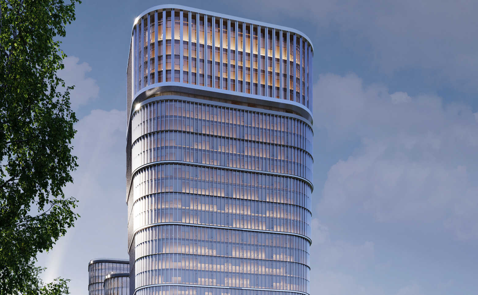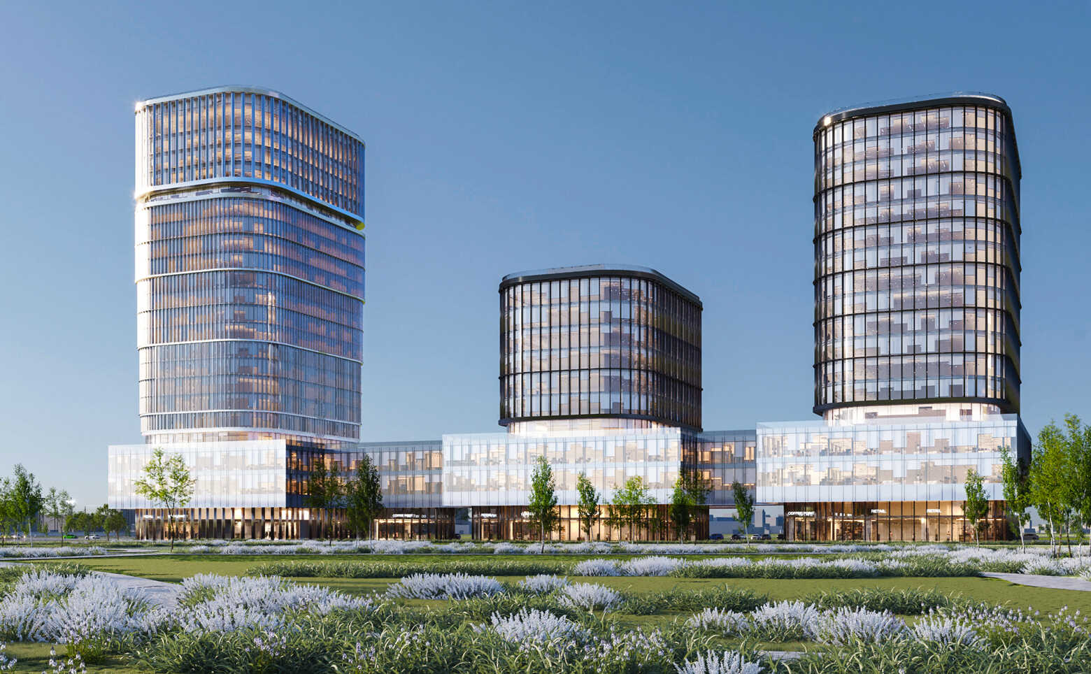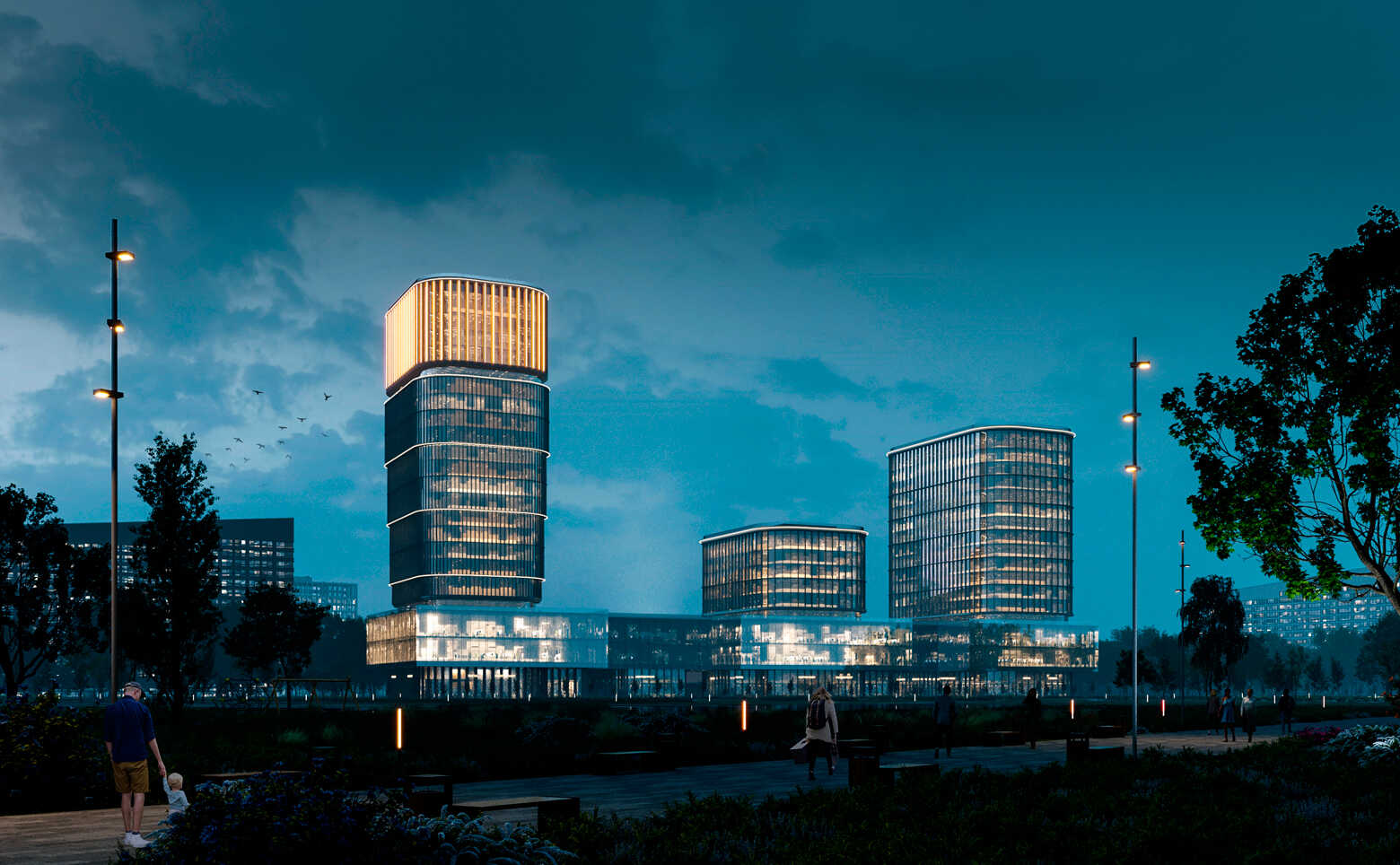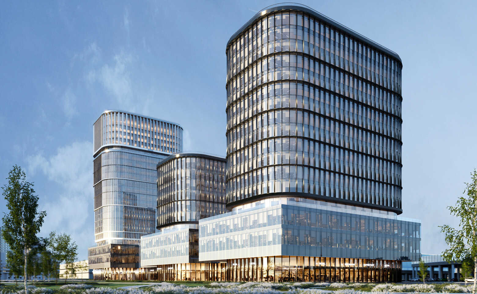 Офисный квартал состоит из 3 разноэтажных башен, объединенных торговой галереей. Фасады зданий выполнены из прозрачного стекла и металла с рисунком из ламелей. Сами башни расширяются кверху, а полукруглая геометрия офисных этажей — это отсылка к форме парка «Ходынское поле». Каждая башня имеет дизайнерское двусветное лобби с высотой потолков до 8 метров, которое ведет в «парящую» галерею, где размещены объекты инфраструктуры. В состав бизнес-центра входят пространства free working с зонами для уединенной работы и местами для отдыха, конференц-зал, фитнес-студия и спа-центр, а также арт-галерея. На 5 этаже центральной башни расположен ресторан с выходом на летнюю веранду и видами на парк «Ходынское поле». Башни оборудованы 10 скоростными пассажирскими и 2 сервисными лифтами. Современные инженерные системы обеспечивают комфортный микроклимат, а вся инфраструктура офисного квартала выполнена в формате «сухие ноги».