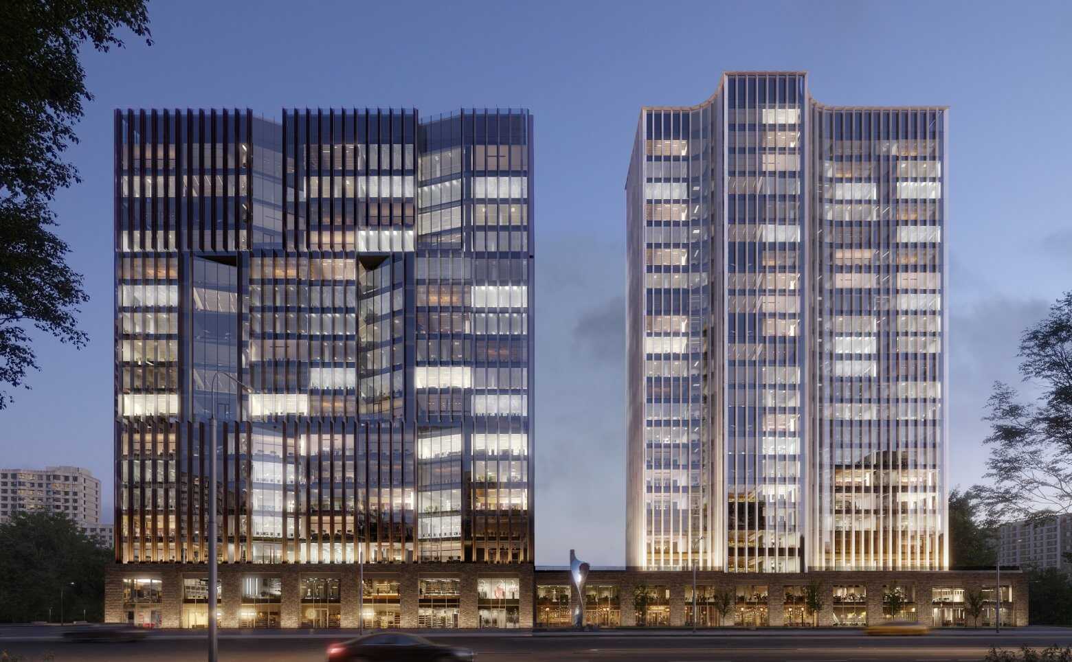 Проект представляет собой бизнес-центр класса «А», состоящий из двух корпусов высотой от 18 до 23 этажей, объединенных стилобатом. Фасады выполнены из панорамного остекления. Архитектором проекта выступает бюро WALL.