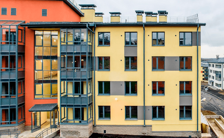 Жилой квартал включает в себя 20 кирпично-монолитных жилых домов высотой в 4 этажа: 13 ситивилл, 3 односекционных дома, 4 многоподъездных корпуса. Объект рассчитан на 563 квартиры. Дома расположены по принципу каскадной архитектуры, что обеспечивает красивый вид из окон независимо от местоположения дома. Светлые фасады украшены яркими цветовыми геометрическими акцентами и витражным остеклением. Лаконичная отделка входных групп выполнена в скандинавском стиле с применением бежевой штукатурки, керамогранитом «под дерево» и панорамным остеклением. В каждой секции предусмотрены помещения для хранения колясок.