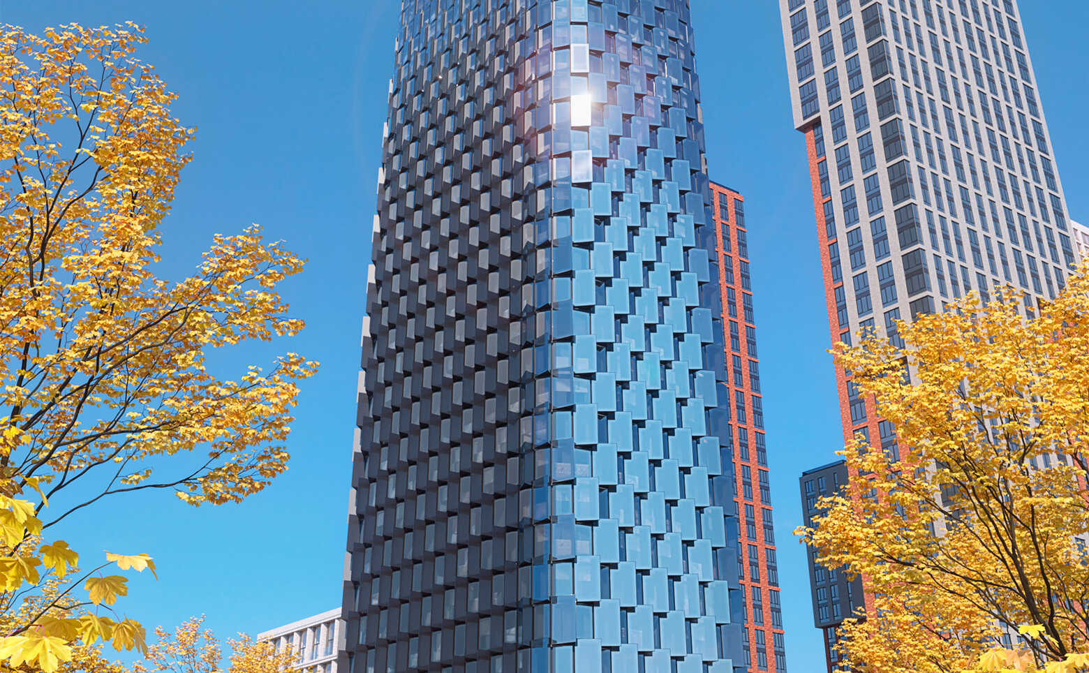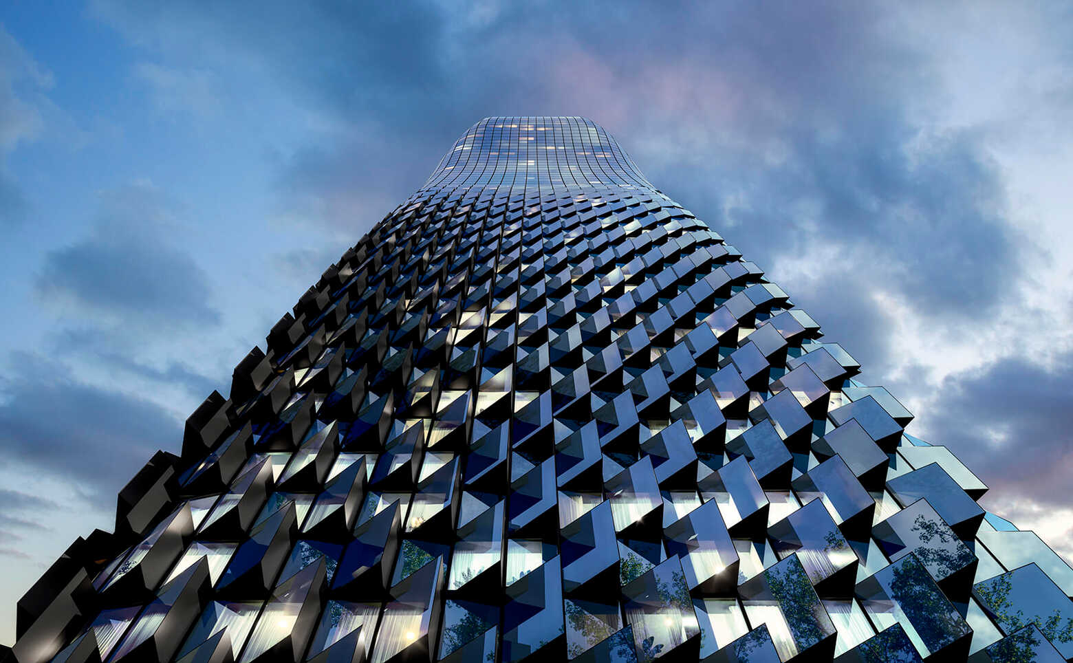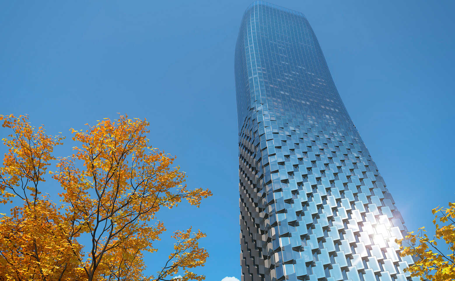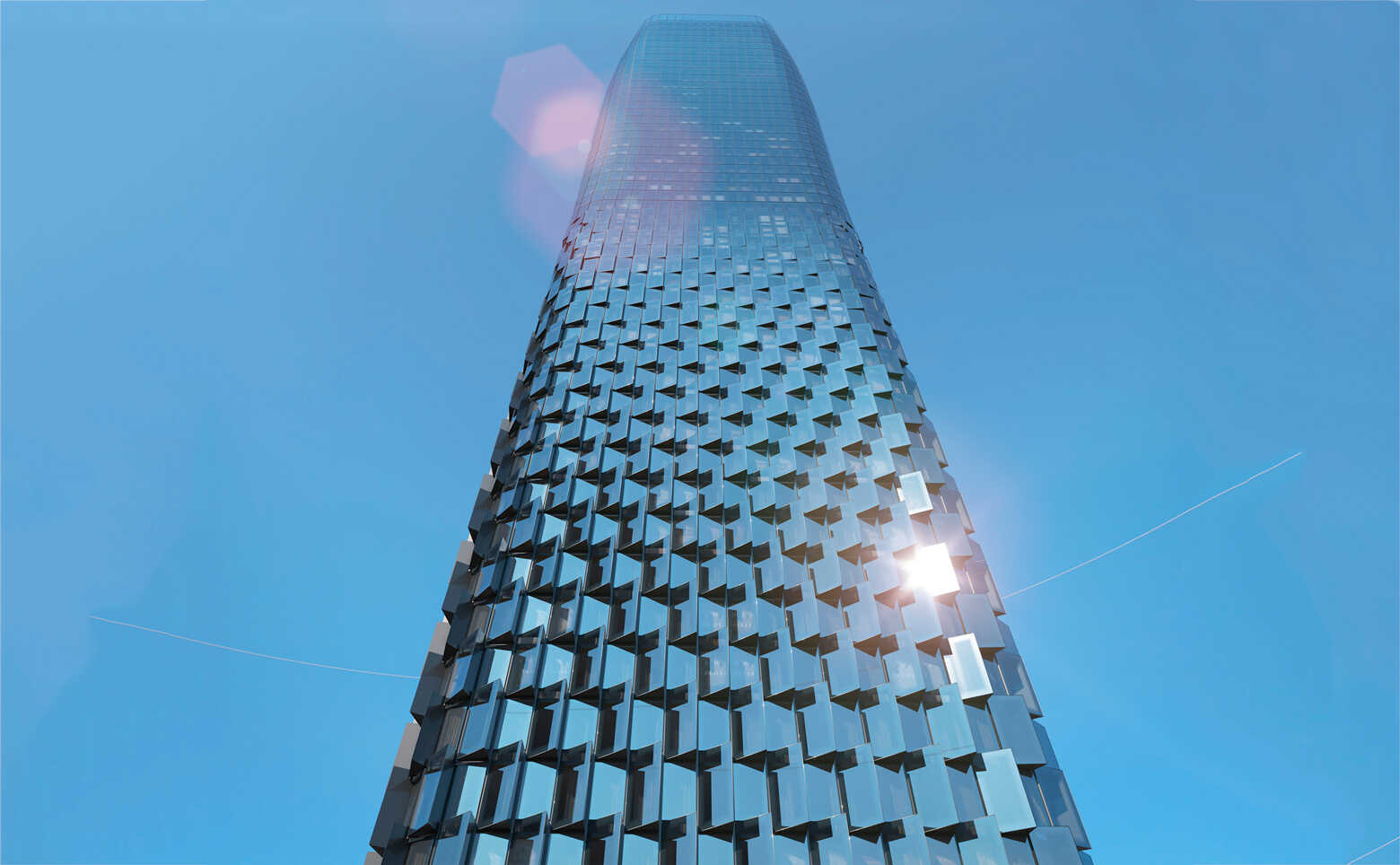 Проект представляет собой 58-этажный небоскреб, выполненный в футуристическом стиле от бюро ADM. Нижняя часть фасада — фактурная, со стеклянными эркерами. Для облицовки элементов фасада используются алюминиевые кассеты. В верхней части витражных конструкций предусмотрены воздухозаборные решетки для индивидуальной системы вентиляции, интегрированные в фасад. Многофункциональное стекло используемое на фасадах сочетает в себе солнцезащитные и энергосберегающие свойства.