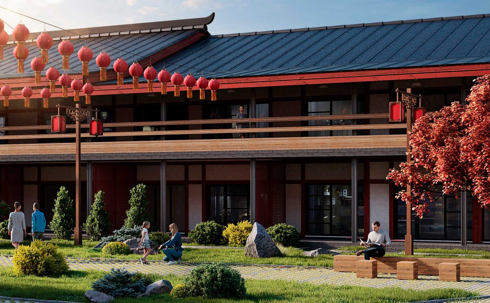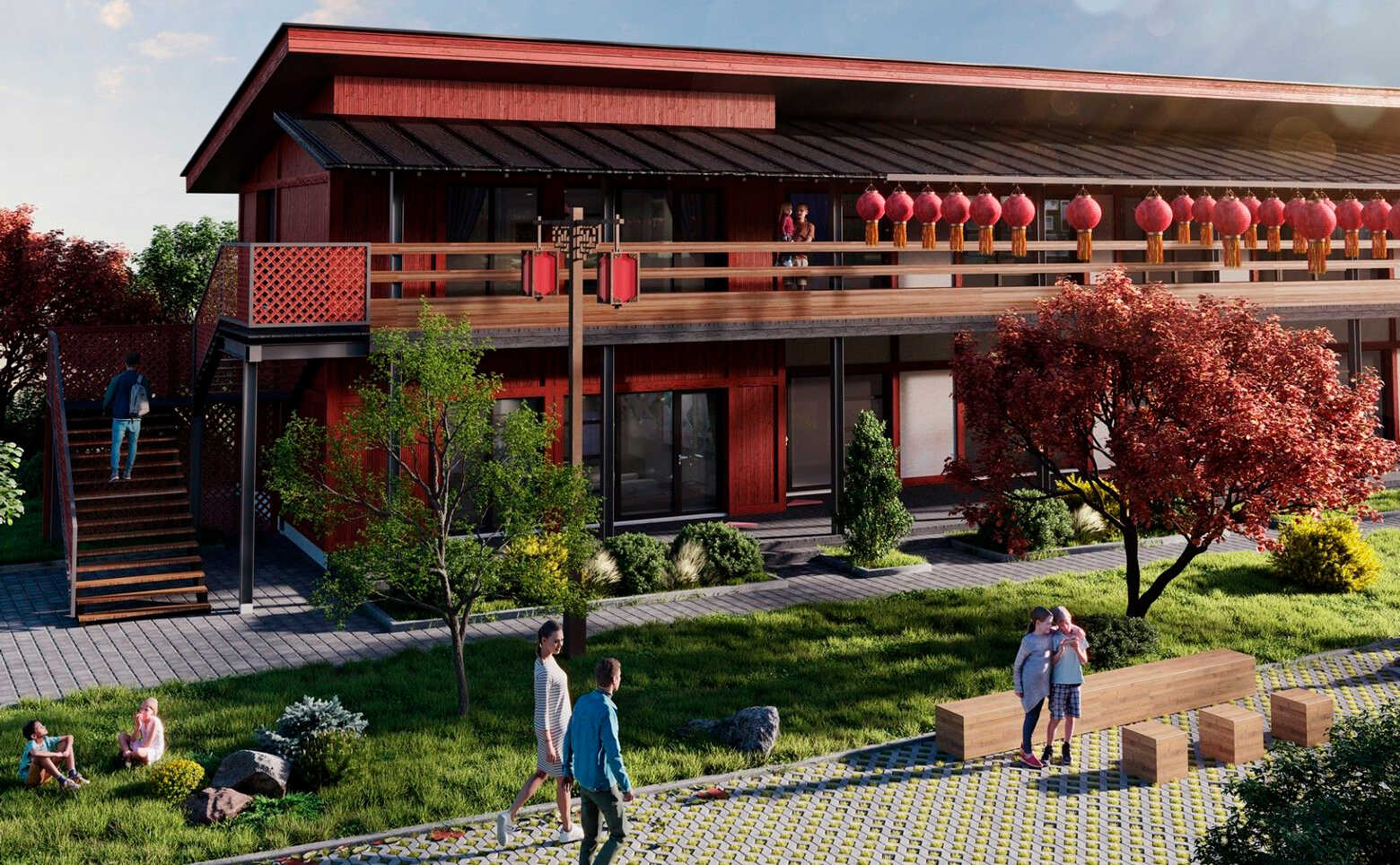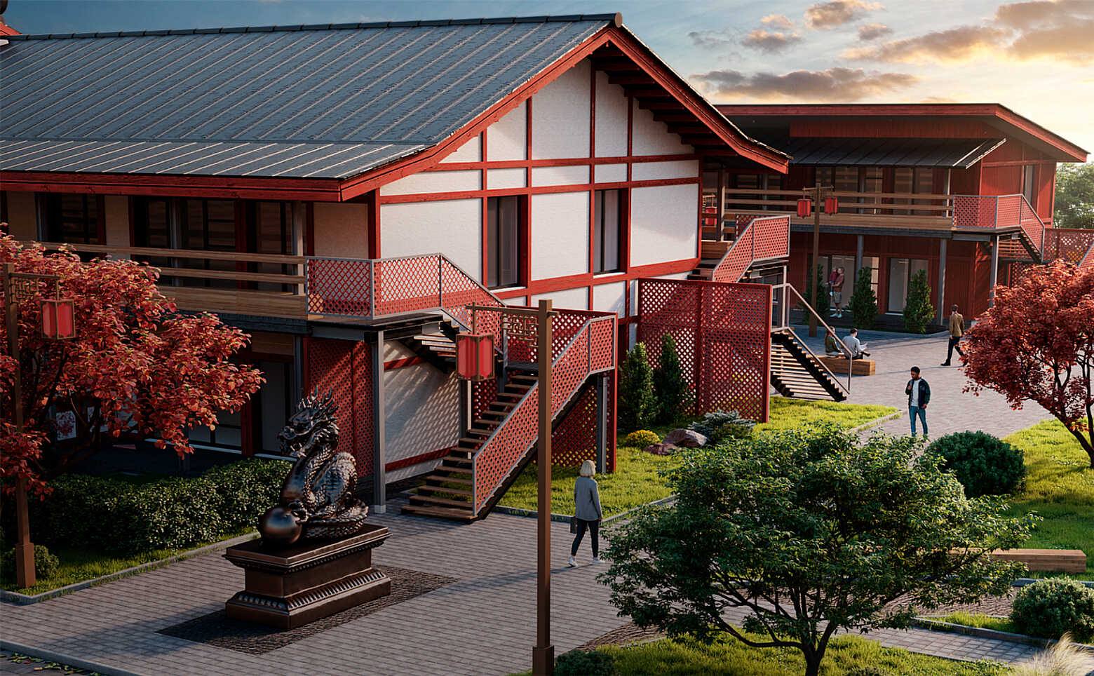 Комплекс апартаментов «ДАО» включают в себя 5 корпусов высотой в 2 этажа. Комплекс является частью восточной экспозиции этнопарка «Этномир» и построен в стиле традиционной китайской архитектуры.