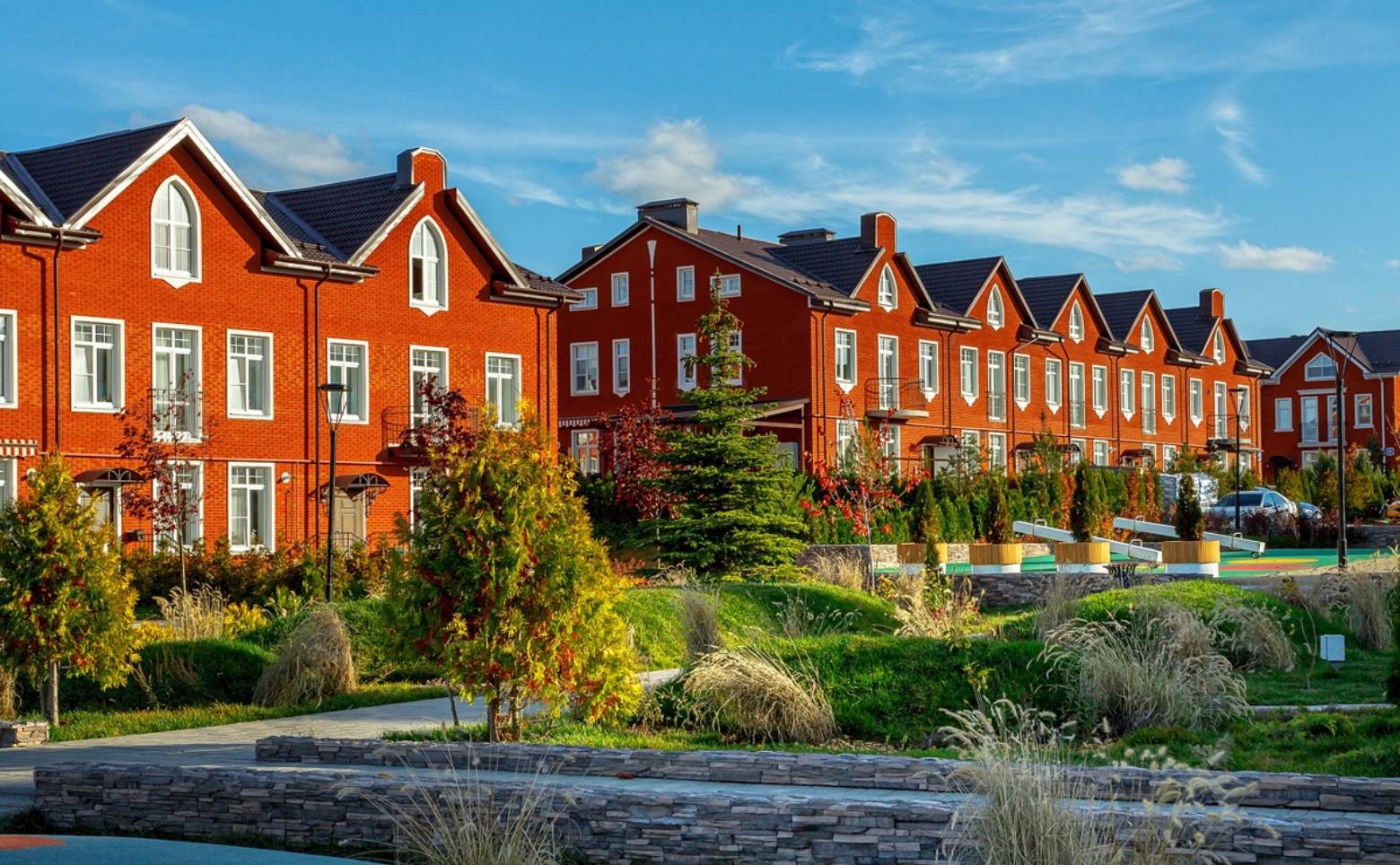 Инфраструктура поселка развита на территории есть: общеобразовательная школа, детский сад. Присутствуют службы бытовых услуг, салон красоты, фитнес, аптека, универсам и семейное кафе. Спортивные объекты: футбольное поле, хоккейная коробка, баскетбольная и воркаут площадки. Каждый таунхаус и квадрохаус имеет 2 парковочных места перед входом. Въезд на территорию осуществляется через КПП, оснащённый Системой Контроля и Учёта Доступа.
