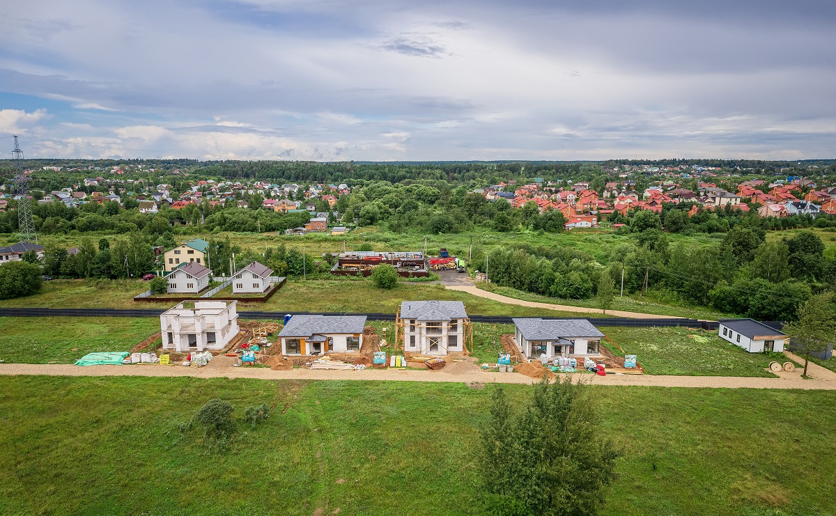 Коттеджный поселок представляет собой комплекс малоэтажных домов переменной этажности — от 1 до 2 этажей. Здания построены по 4 проектам, фасады выполнены в едином стиле.