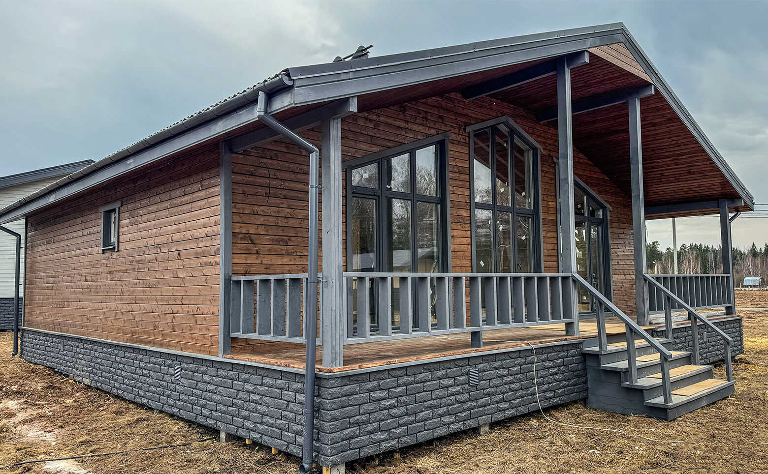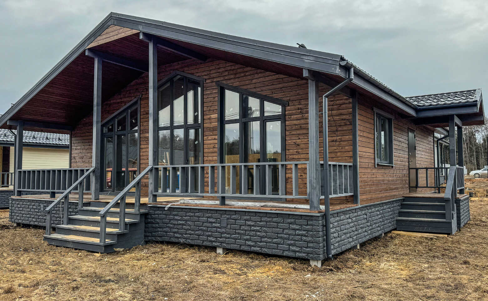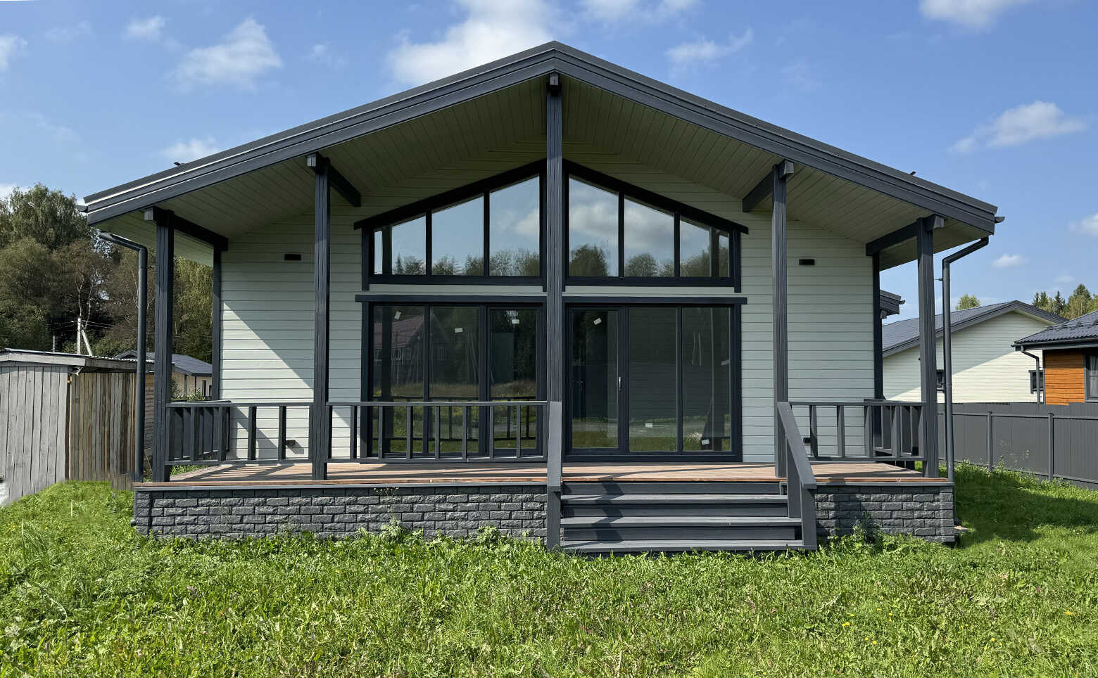 Коттеджный поселок представляет собой каркасные дома с вентилируемыми фасадами из дерева. Срок строительства домов под подряд с момента заключения договора: 5 месяцев.