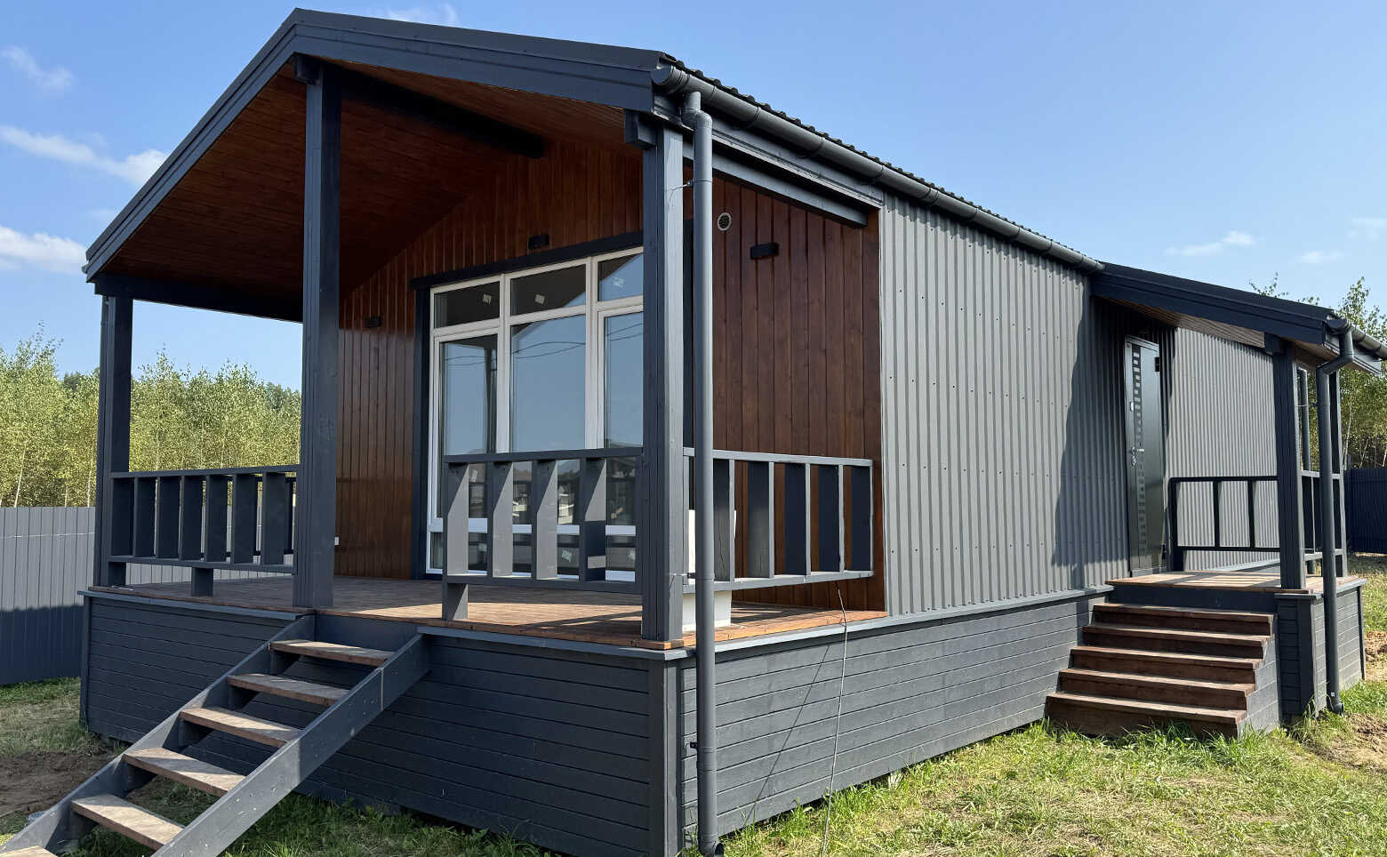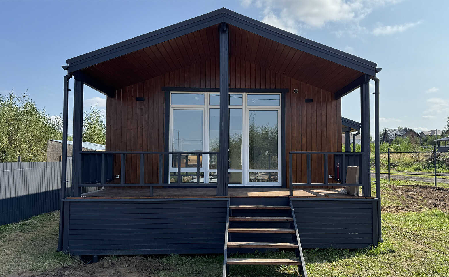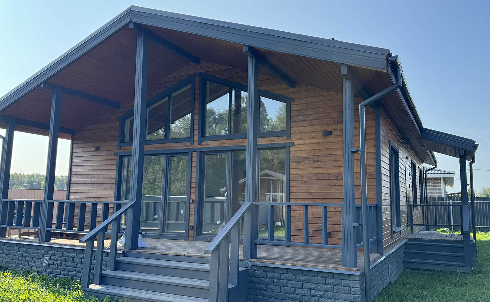 Коттеджный поселок представляет собой каркасные дома с вентилируемыми фасадами из дерева. Срок строительства домов под подряд с момента заключения договора: 5 месяцев.