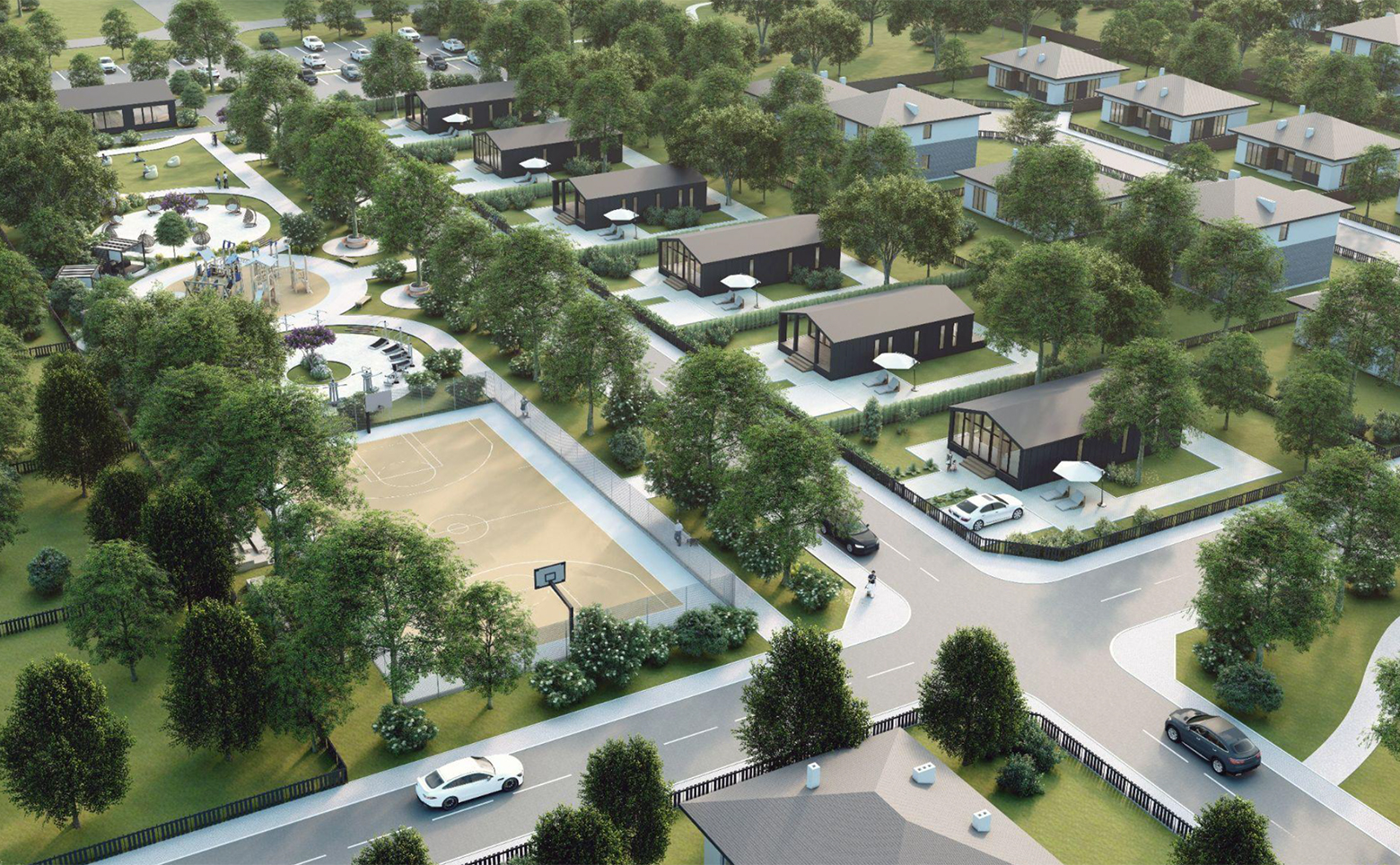 Поселок располагает обширной инфраструктурой: магазин, кафе, спа-комплекс, ретрит-центр, бани и спортивный зал. Для детей и взрослых продуманы игровые зоны, просторные парки, а также аллеи пешеходных дорог, идеально подходящих для прогулок. Для владельцев автомобилей предусмотрена стоянка на 70 мест.
