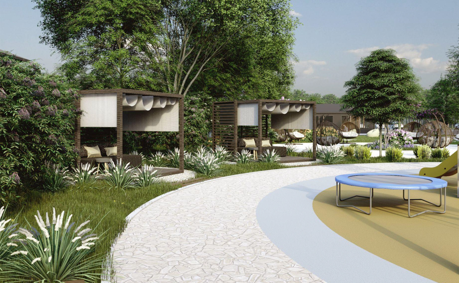 В проекте предложено несколько видов планировок коттеджей с просторной кухней-гостиной и террасой. Все дома сдаются с мягкой мебелью, увеличенными, панорамными окнами и высотой потолков 3,5 метра.