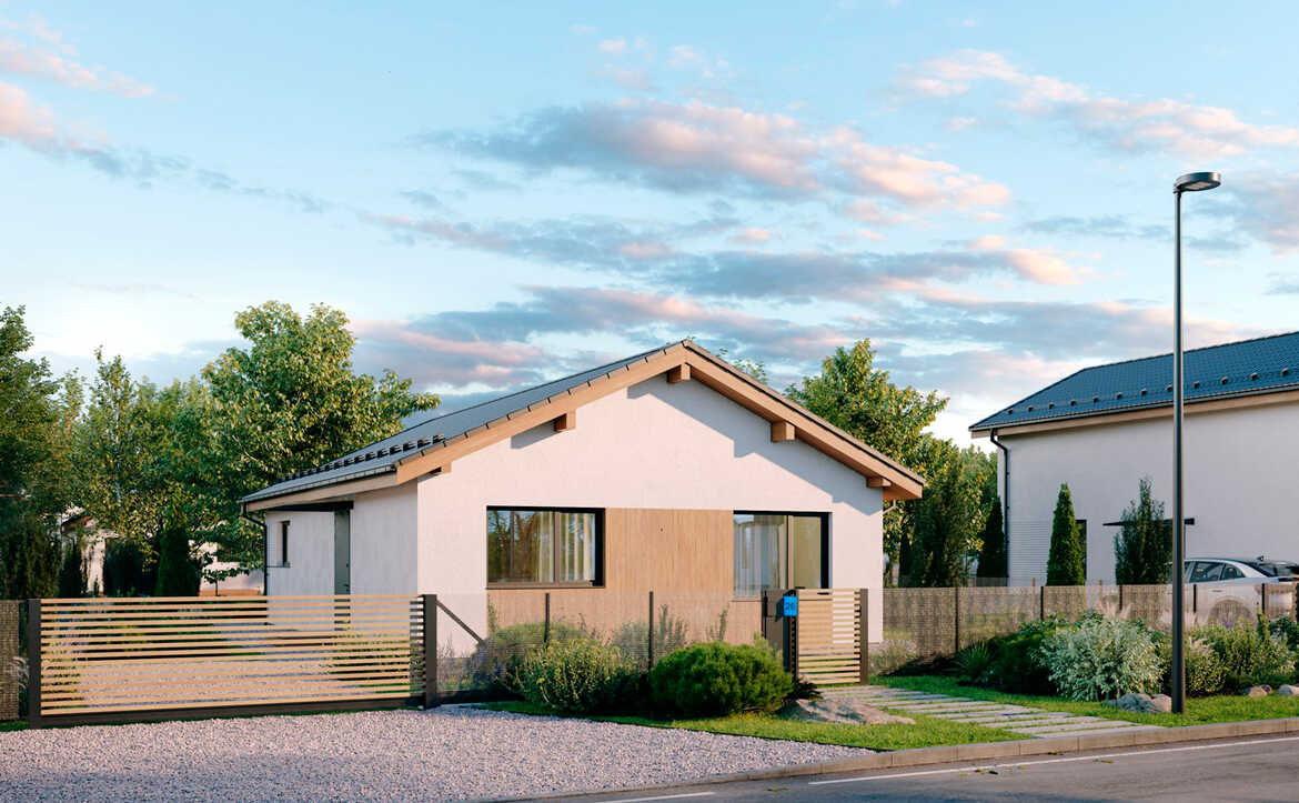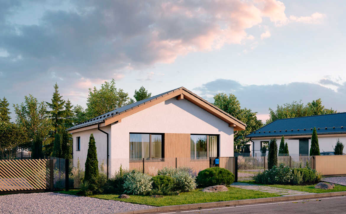 Проект представляет собой коттеджный поселок, выполненный в едином архитектурном стиле. На участках от 5 соток строятся одноэтажные и двухэтажные дома, с технологией строительства из газобетона и фасадами, выполненными из комбинированных материалов.