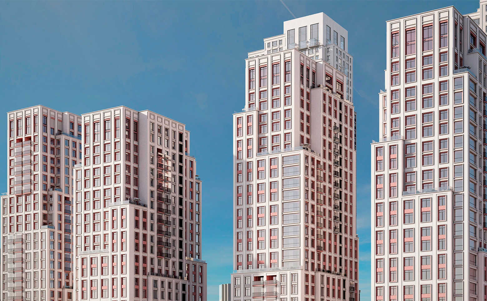 В проекте предложено 50 вариантов планировочных решений. На первых и последних этажах — уникальные форматы: с террасами, отдельным входом, двухуровневые. Их всего 126. На последних этажах башен предложены квартиры со вторым светом, несколькими террасами, бассейном, сауной, дымоходом под камин, помещениями под зимний сад. Все квартиры сдаются с подчистовой отделкой.
