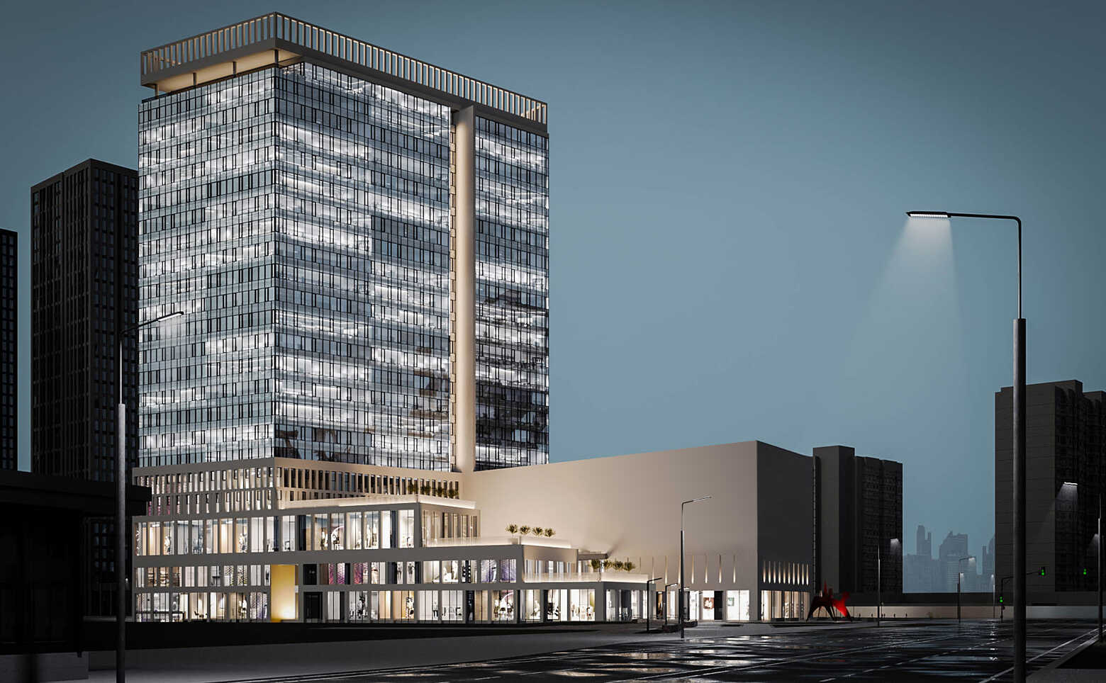 Проект представляет собой бизнес-центр класса B+. Высота здания составляет 23 этажа, на которых размещено 123 разноплановых офиса. Архитектурная концепция бизнес-центра разработана совместно с бюро «IQ». Здание оснащено современной системой приточно-вытяжной вентиляции и системой кондиционирования чиллер-фанкойл. В офисном блоке предусмотрено 7 высокоскоростных лифтов. Доступ в здание осуществляется по картам, через мобильное приложение и Face ID. С 1 по 5 этажи здания занимает инфраструктурный блок, доступный как резидентам, так и посетителям бизнес-центра, в нем размещены: торговый центр с супермаркетом, фудхолл, ресторан, медицинский и спортивный центры. На этажах с 6 по 23 размещен офисный блок, вход в который осуществляется через выделенную зону ресепшен на 1 этаже. На подземном уровне расположен отапливаемый паркинг на 179 мест, 170 из которых оборудованы двухуровневой механизированной системой парковки Klaus. Доступ в паркинг осуществляется на лифте со всех этажей.
