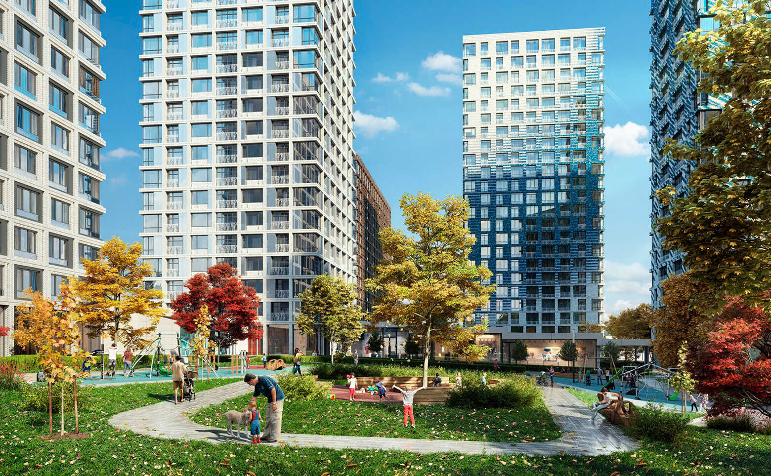 В составе объекта есть собственная набережная с объектами инфраструктуры для отдыха, детский сад на 150 мест, продуктовый магазин, фитнес-центр с бассейном, аптека, ресторан, пункт химчистки и служба консьержей. В просторных холлах выполнено панорамное остекление и отделка с использованием дерева, подсветкой потолка и удобной мягкой мебелью. Под всеми корпусами спроектирован двухуровневый паркинг на 1564 места: по одному месту на каждую квартиру. Двор благоустроен детскими и спортивными площадками, скамейками, цветами и декоративными растениями.