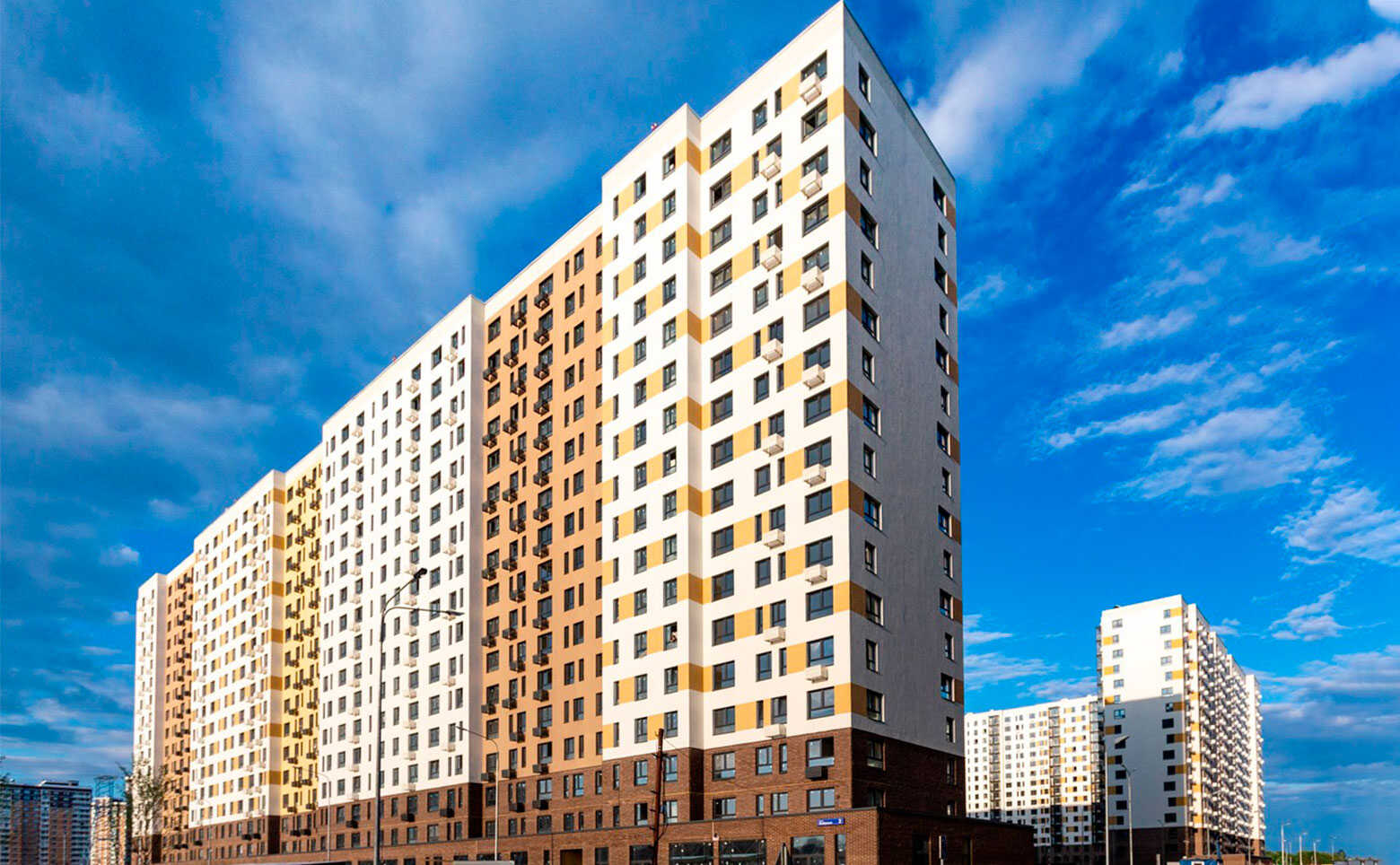 Один из самых масштабных жилых комплексов в Подмосковье, который включает в себя порядка 50 корпусов. Строительство ведется по кирпично-монолитной технологии. В оформлении фасадов применяется облицовочный кирпич природных оттенков.