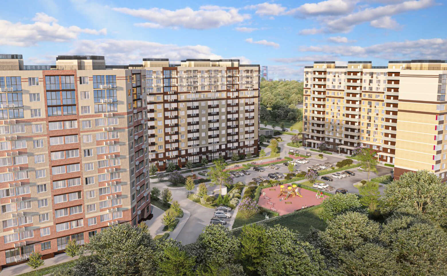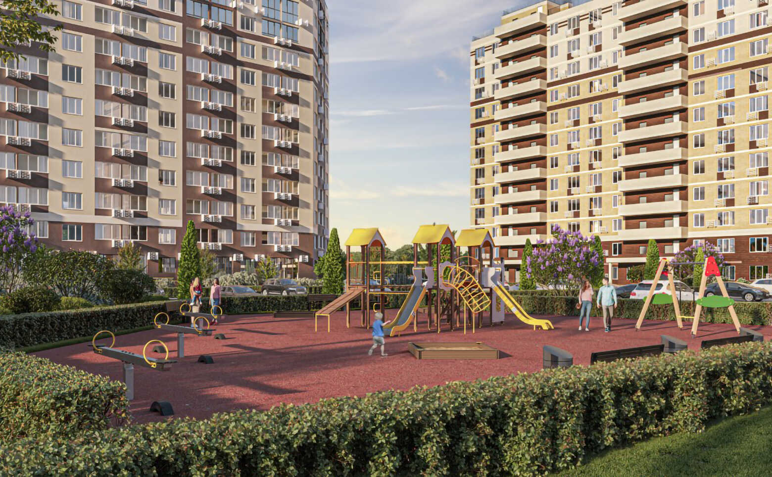 Придомовая территория комплекса благоустроена и озеленена. Во дворе оборудованы детские игровые площадки, для владельцев автомобилей предусмотрены открытые наземные парковки.
