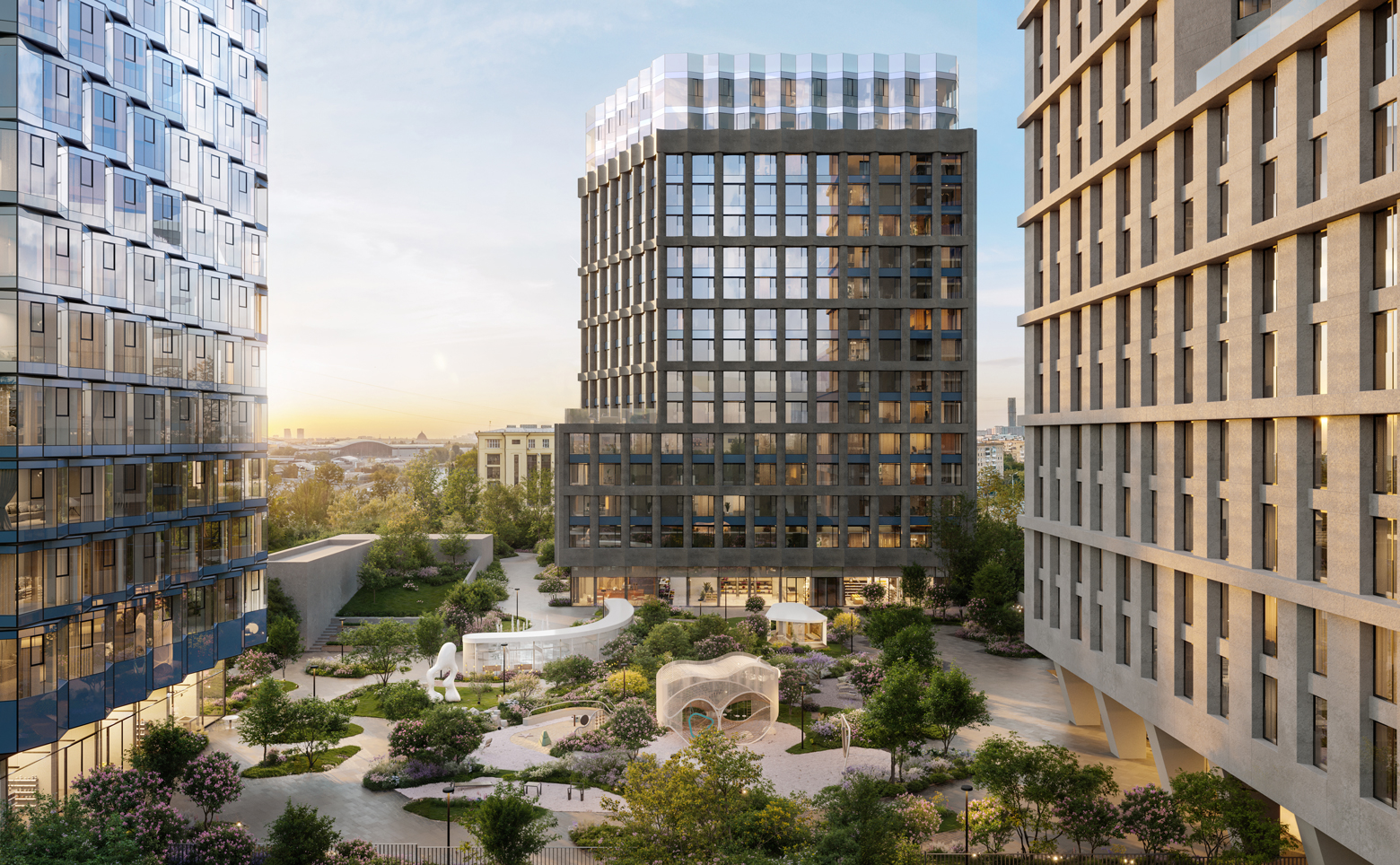 На территории благоустроенного двора находятся детские и спортивные площадки, центральная площадь с фонтаном, зеленые дорожки и зоны отдыха. В комплексе есть 2 ресторана с живописным видом на парк, 3 уютных кафе и современная фитнес-студия. Для владельцев автомобилей предусмотрен подземный паркинг на 344 места. Территория закрыта, с системой контроля доступа и круглосуточным видеонаблюдением.