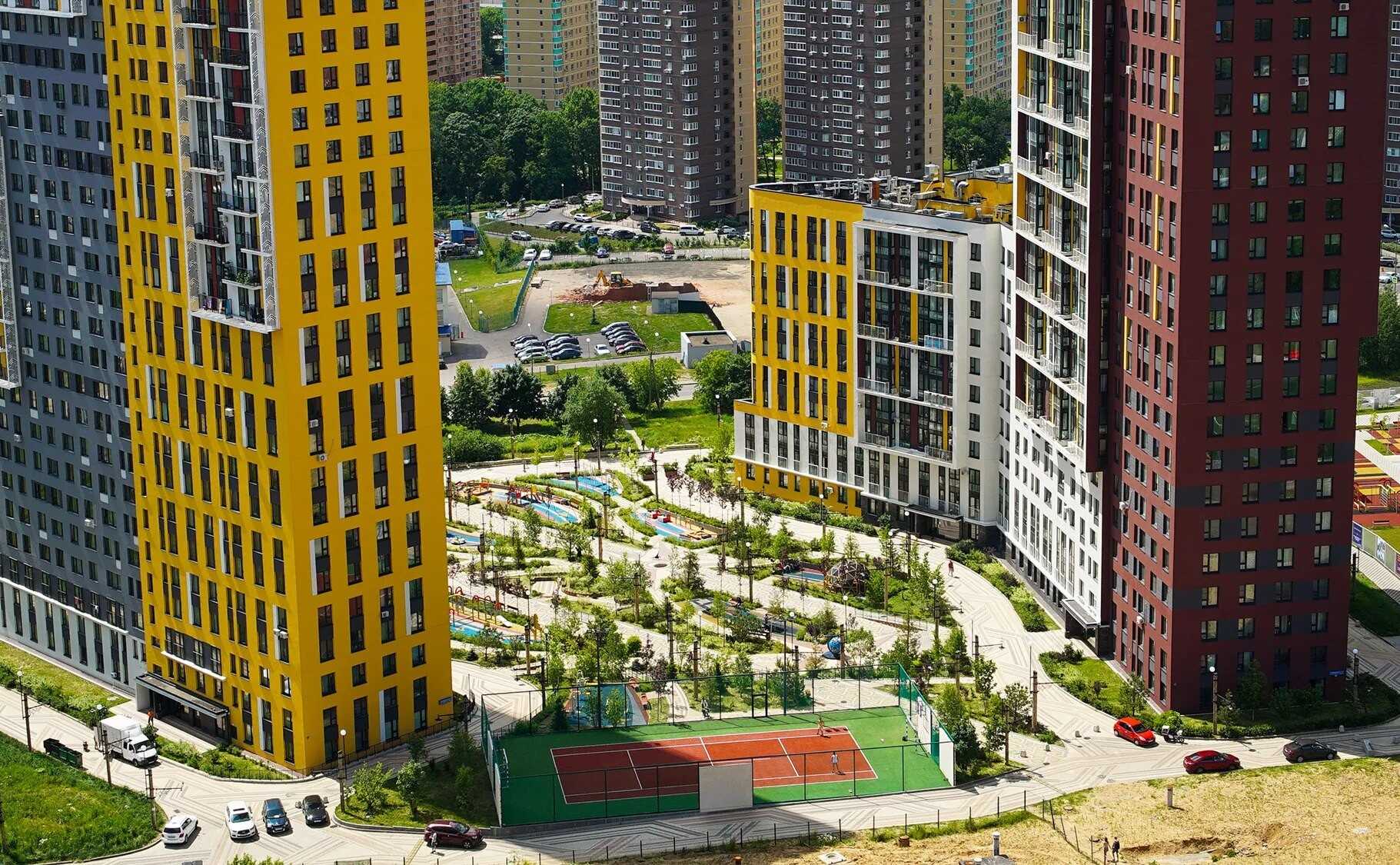 Внутренняя инфраструктура жилого комплекса включает внутренние дворы, оборудованные зонами отдыха и детскими площадками. Первые этажи корпусов предлагают коммерческие и общественные помещения, а также парковочные места для жильцов и их гостей.