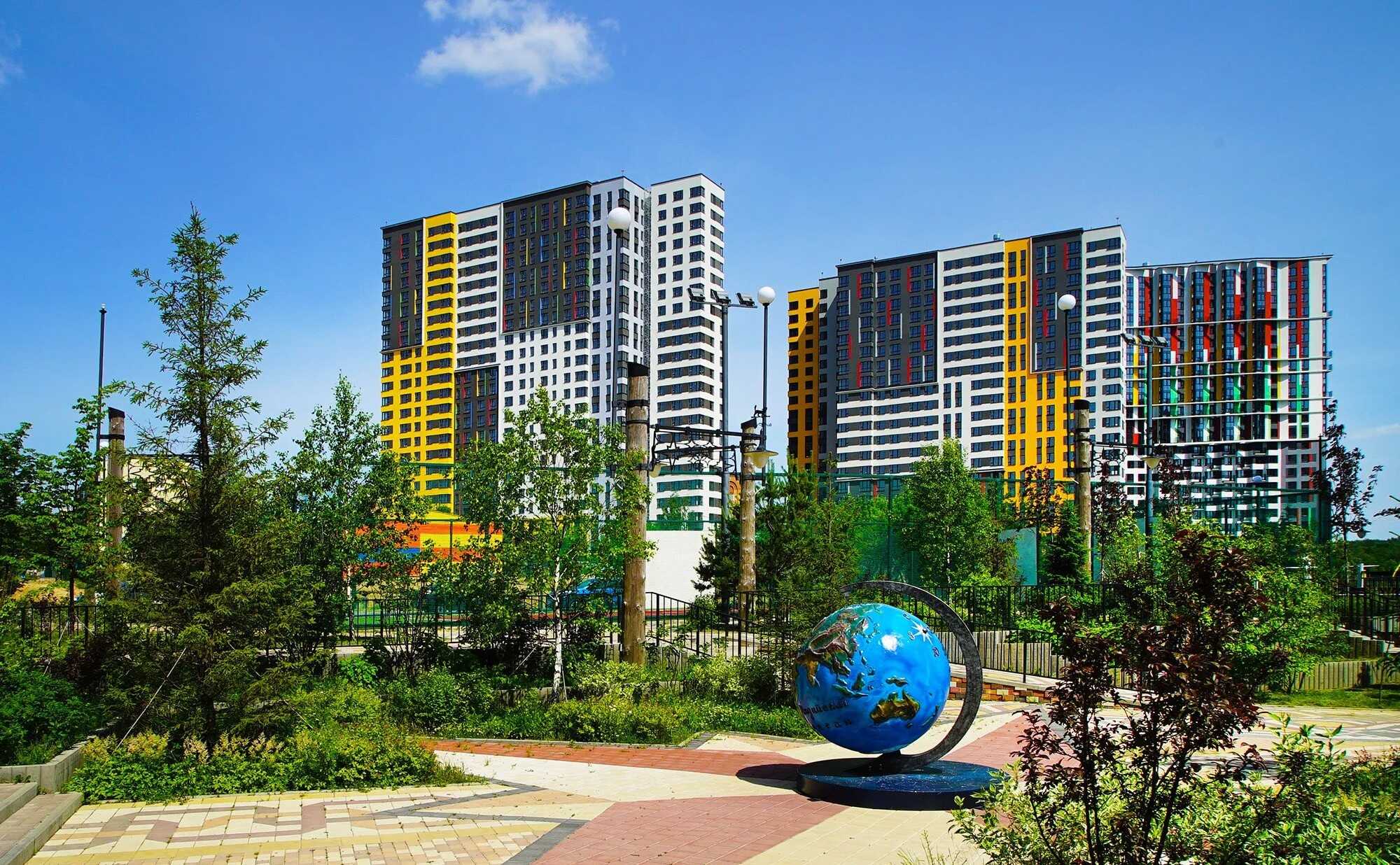 Жилой комплекс представляет собой проект, состоящий из 15 корпусов переменной этажности. Фасады зданий выполнены с использованием большой площади остекления, оригинальным ходом оконных проемов, ковкой и прочими элементами. Секции комплекса обладают различными характеристиками, что позволяет подобрать оптимальный вариант для каждого жильца. Всего спроектировано 3492 квартиры.
