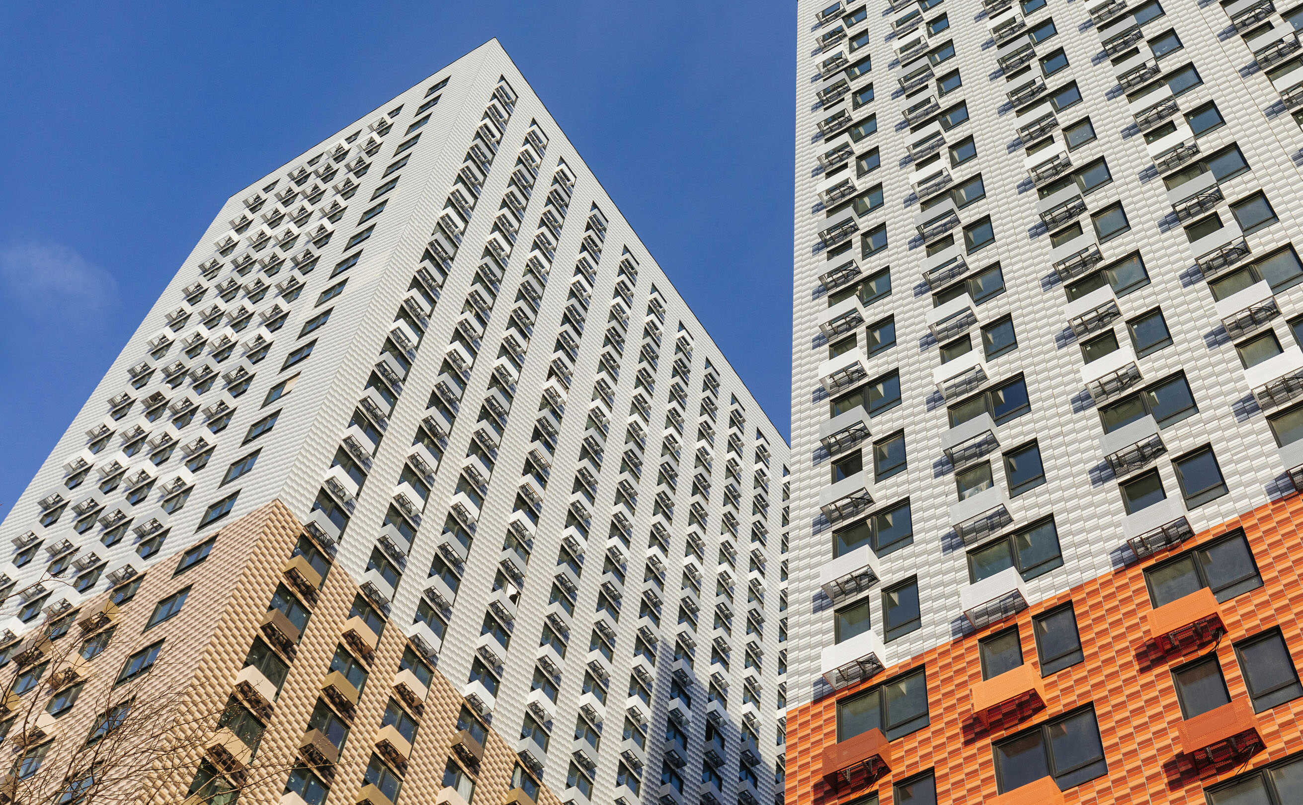 Жилой комплекс «Новохохловская 15» представляет собой четыре 24-33-этажных монолитных дома, которые обеспечены системами пожаротушения и видеонаблюдения. На фасадах зданий размещены корзины для установки блока кондиционеров. В каждой секции установлены бесшумные скоростные лифты. Вход в секции без порогов, с выходом во двор и на улицу.