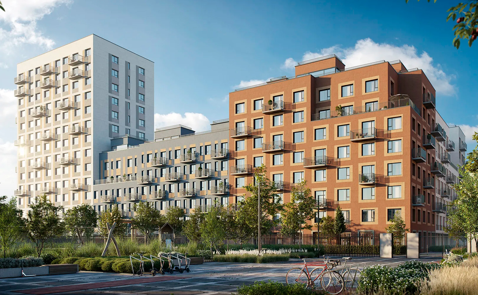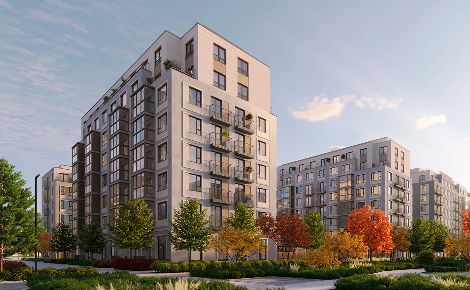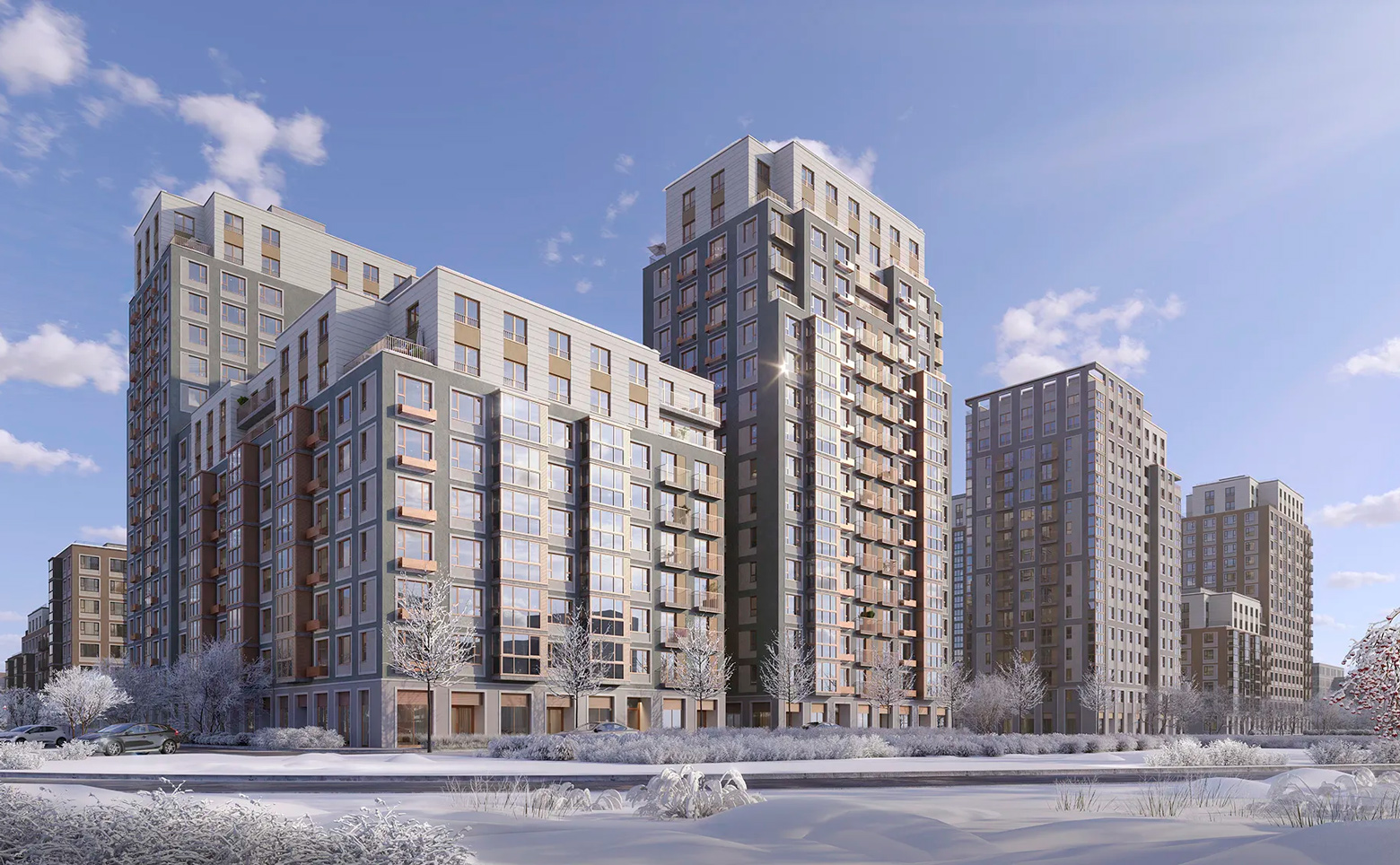 Жилой комплекс включает в себя 7 корпусов переменной этажности высотой от 4 до 17 этажей. В домах спроектированы прозрачные входные группы. Входы сделаны без ступеней и расположены на уровне земли. Предусмотрены сквозные подъезды, которые связывают улицу и двор. В каждом подъезде на первых этажах есть просторные колясочные.