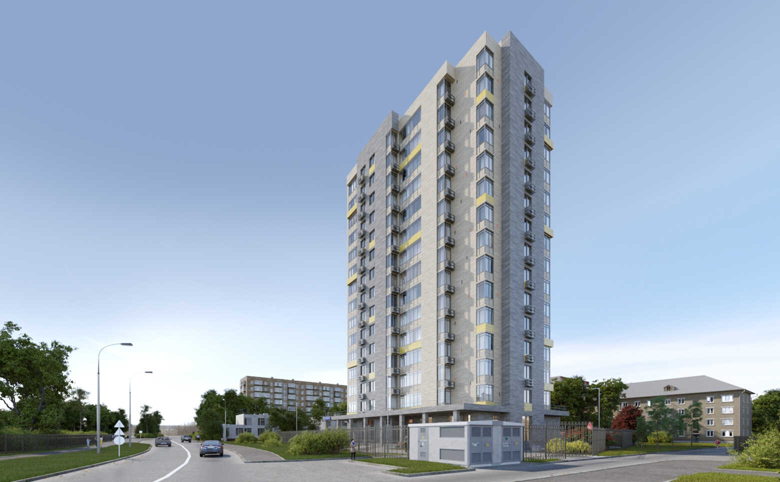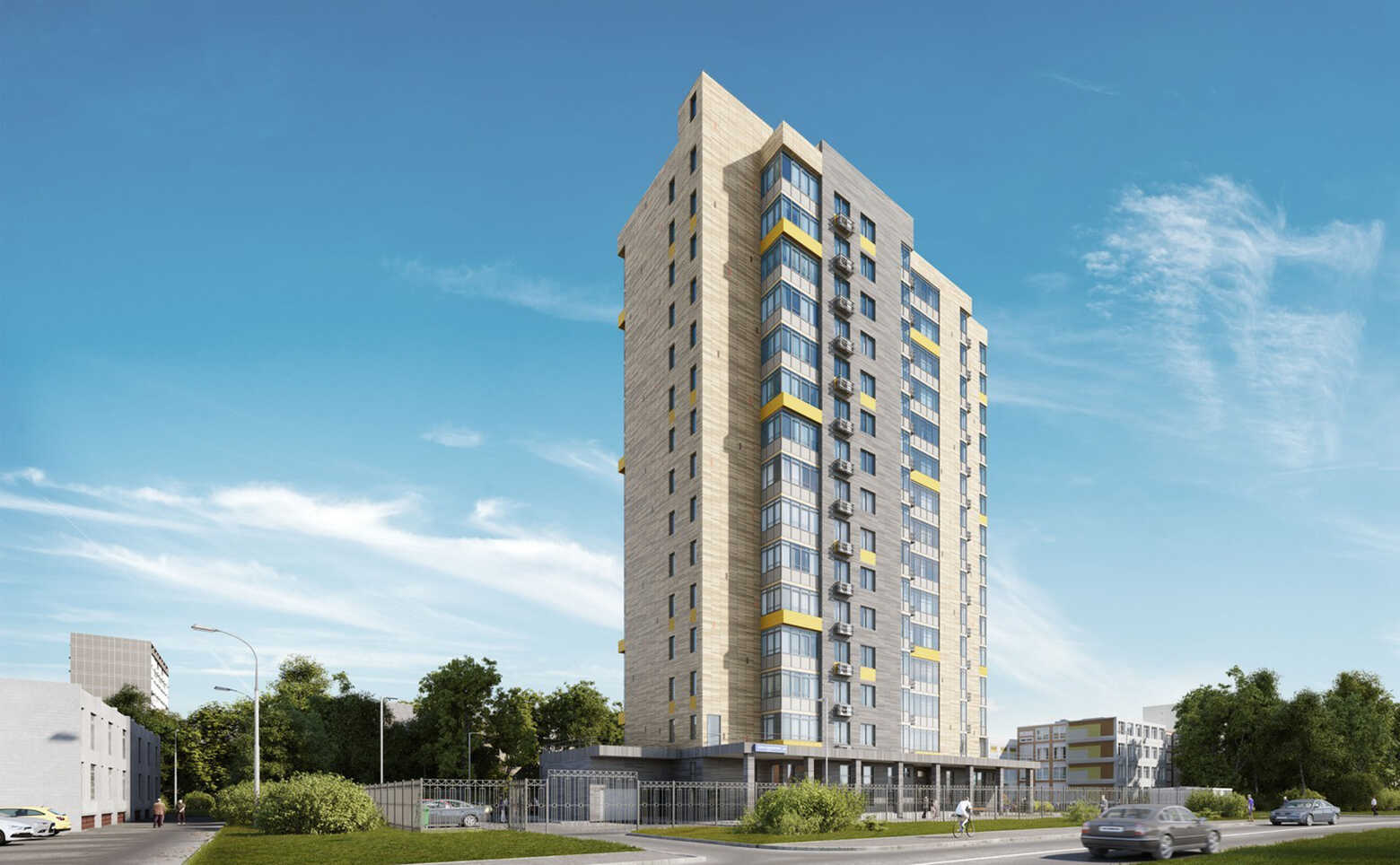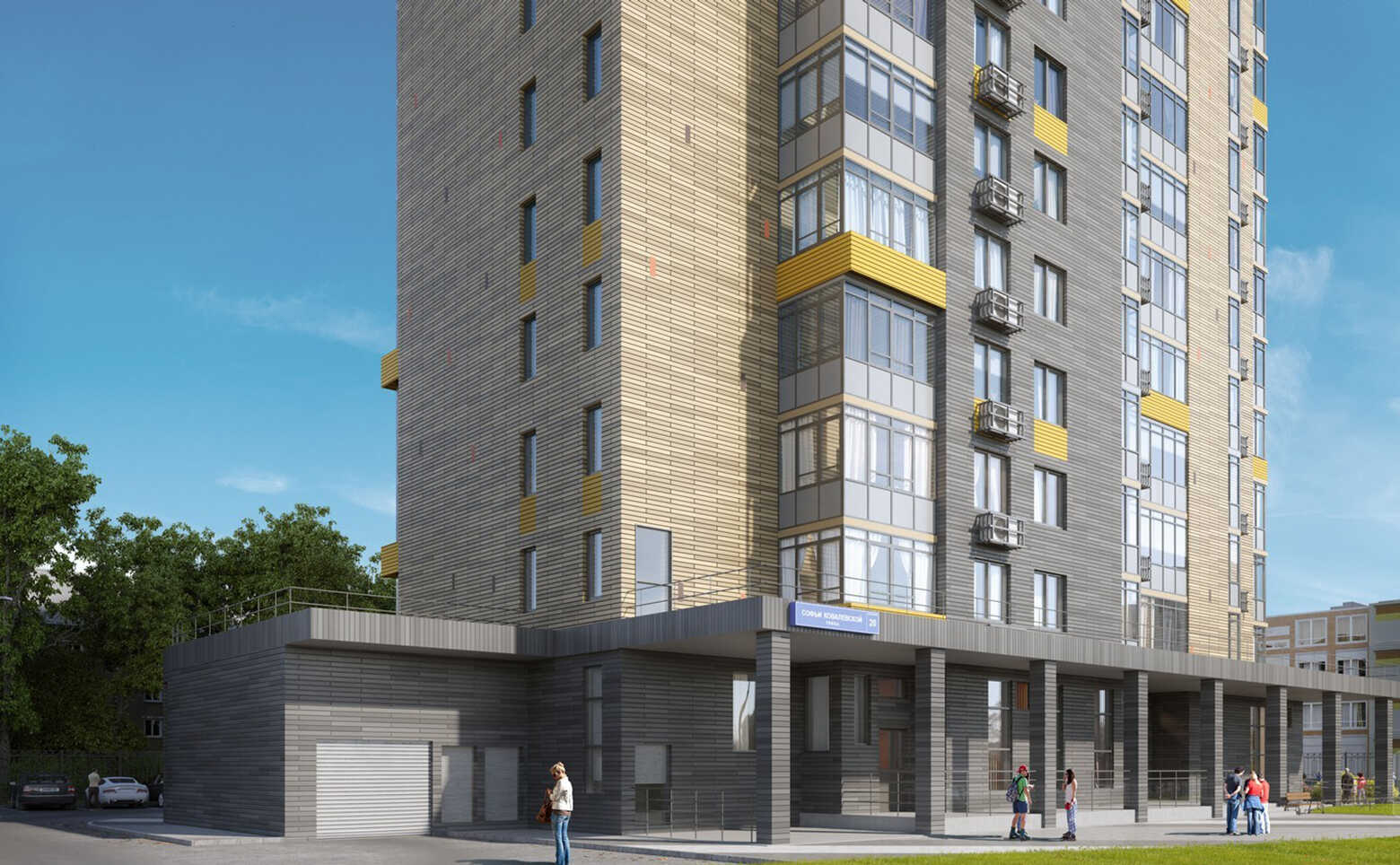 На первом этаже расположен детский учебный центр с группой кратковременного пребывания и возможностью размещения изостудии. В подземном этаже находится паркинг на 45 мест. Проектом предусмотрено благоустройство территории газоном, цветниками, а также декоративными деревьями и кустарниками.