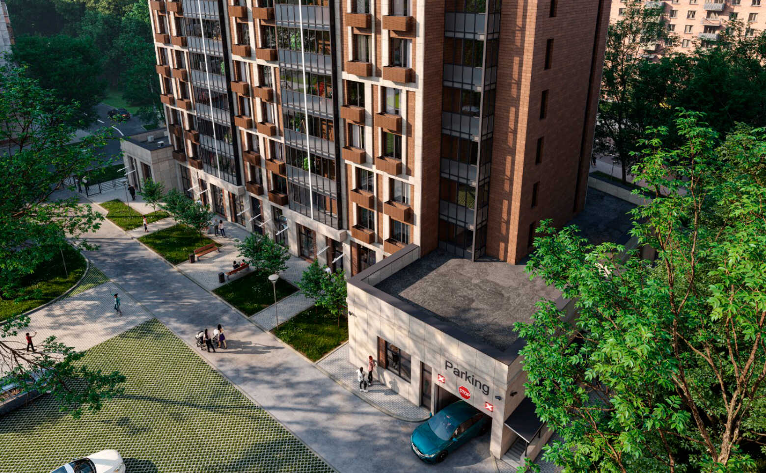 Приватная территория комплекса «Счастье на Семеновской» благоустроена и закрыта. Во дворе выполнен ландшафтный дизайн, установлены детские и спортивные площадки, а также спроектированы места для отдыха. В проекте предусмотрен свой детский развивающий центр, который находится в двух блоках на первом этаже корпуса. Для владельцев автомобилей спроектирован подземный двухуровневый паркинг с отоплением.Сам комплекс оборудован комплексной многоступенчатой системой безопасности, включающий систему контроля доступа на территорию и парковку, систему видеонаблюдения мест общего пользования и двора.