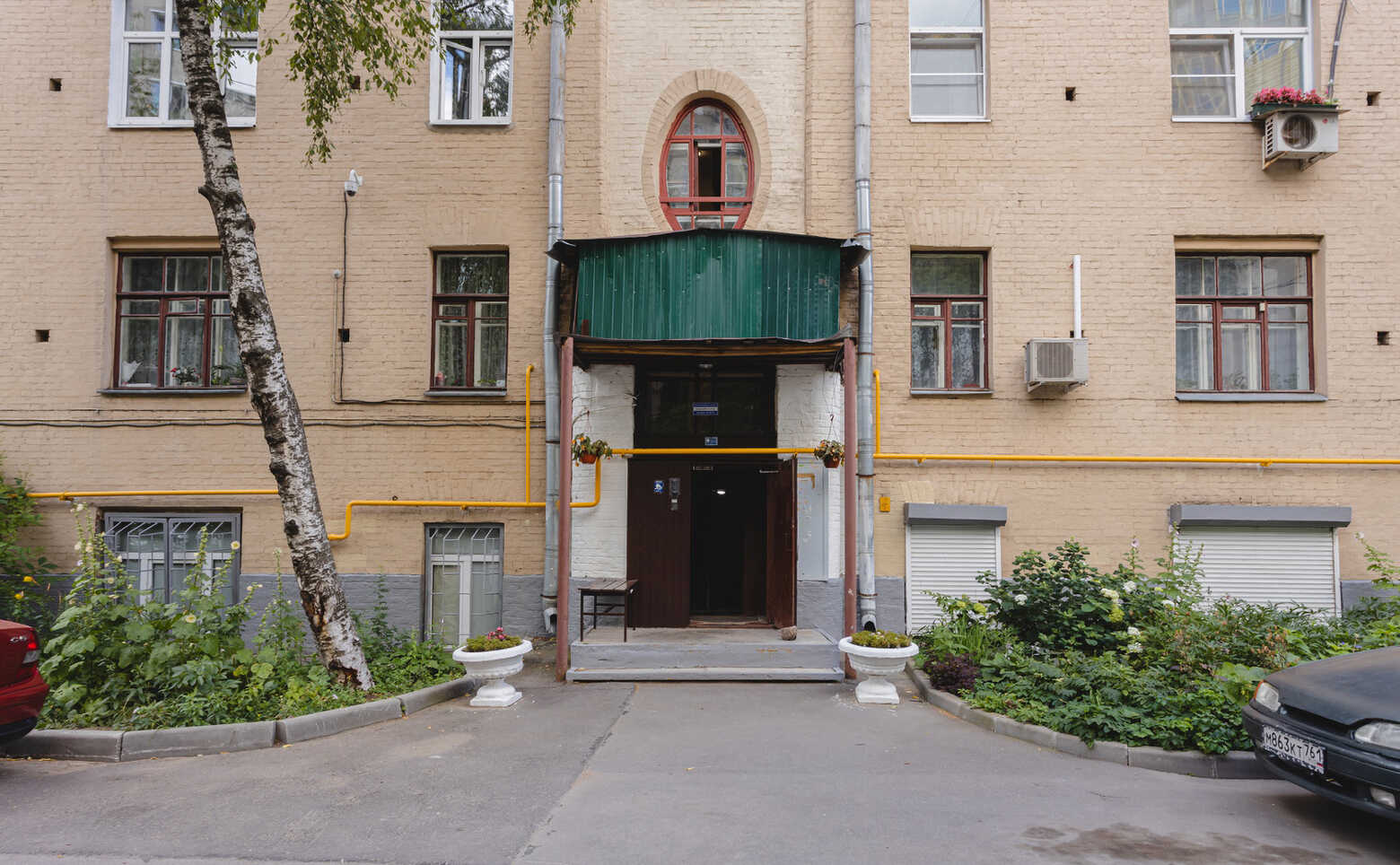 Проект «Смоленская-Сенная площадь 27» — это кирпичный дом высотой в 4 этажа, построенный в 1900 году. В оформлении фасада используется светлые и темные бежевые оттенки.